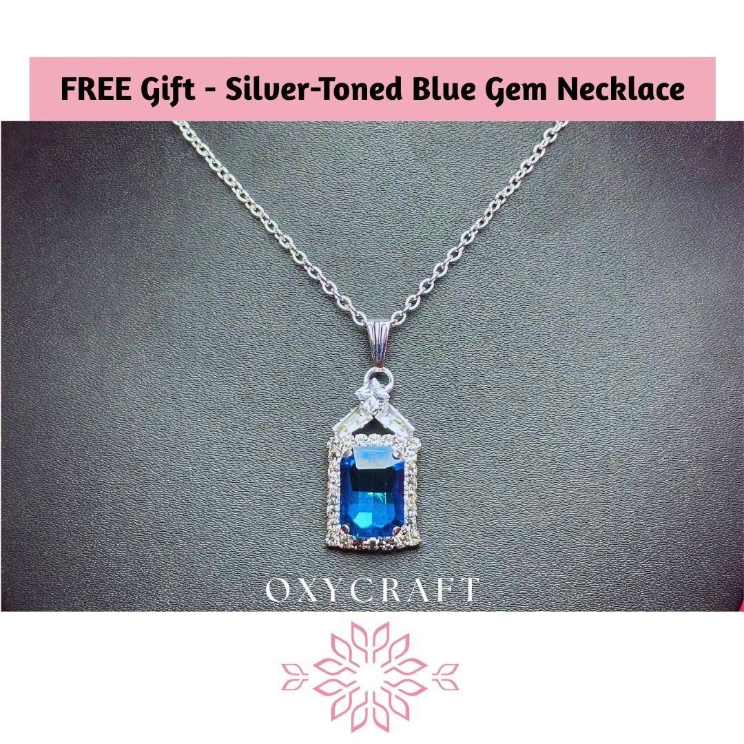 As a special bonus, this hamper includes a complimentary Silver-Toned Blue Gem Necklace. The striking blue crystal pendant adds a touch of modern sophistication, making this set a perfect blend of traditional and contemporary styles.