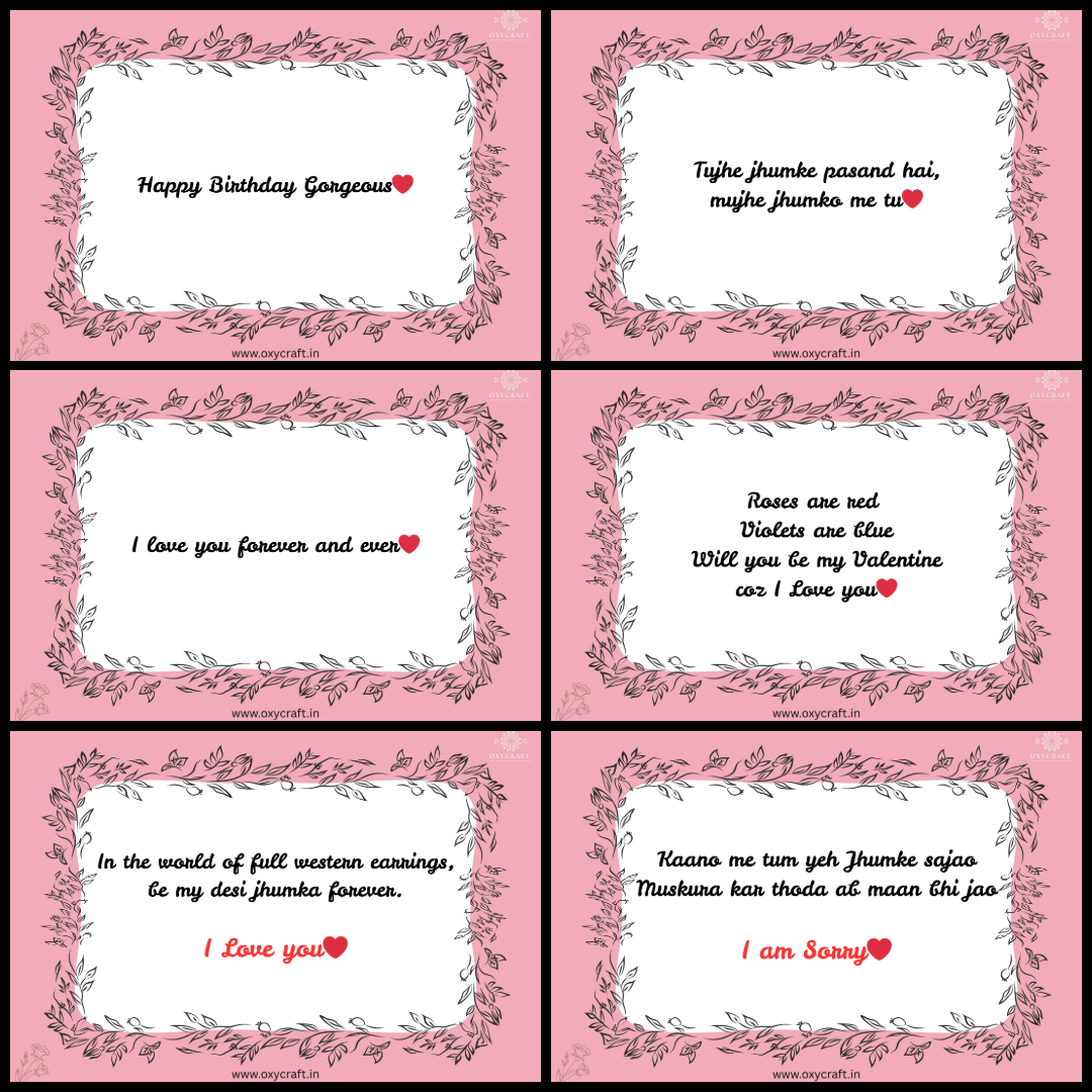 * A set of six personalized gift cards: Each card includes a different heartfelt message, from "Happy Birthday Gorgeous" to "I love you forever and ever," making your gift even more special and personal.